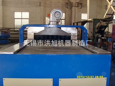 該機工作過程是由輸送帶托著被烘干零件作連續式輸送烘干,工件由人工從烘干機進料端連續不斷地放置于輸送帶上,輸送帶在驅動減速機的帶動下作連續輸送,并邊輸送邊對工件烘干。烘干室內設有加熱管對空氣進行加熱,同時對零件進行烘干處理,直至出料端由人工下料。在機體上部設有熱風循環裝置,通過風機引風使烘干室內熱空氣流通并循環使用。同時,保持室內溫度均勻,提高烘干效果。